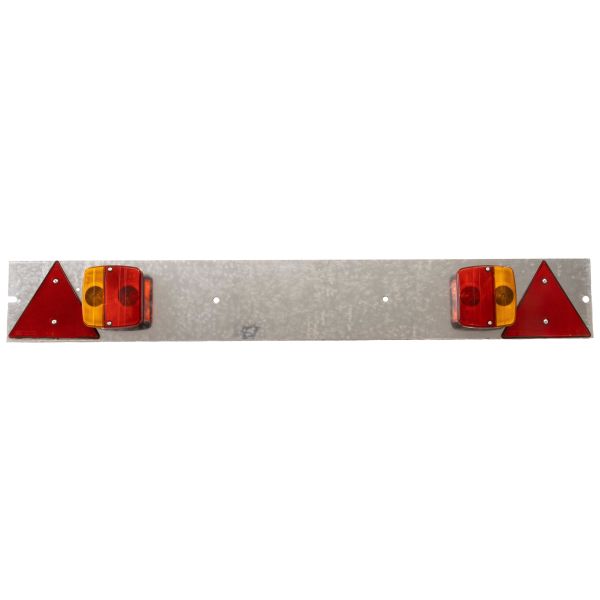 Tuotenumero: 4065146CJ 547185 on 4-toimintoinen valopalkki/perävaunun takavalosarja perävaunuille ja traktoriperävaunuille. Sisältää jarruvalot, vilkut, rekisterikilven valot ja kolmionmuotoiset heijastimet, asennettuna galvanisoituun teräslevyyn, jossa on esiporatut reiät rekisterikilvelle ja kiinnitystä varten perävaunuun.