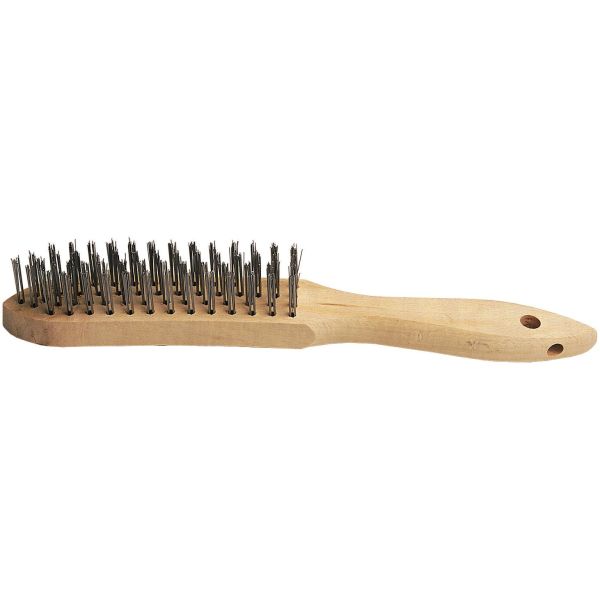 Ruostumaton teräs ja puuvarsi. Pituus 280mm. Harjasten pituus 25mm.