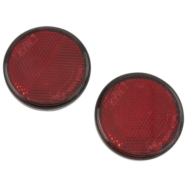 CJ 547174 heijastin peräkärryyn. Pyöreä, punainen heijastin, joka on valmistettu korkealaatuisesta kierrätetystä AS-/ABS-materiaalista. Itseliimautuva tausta. Myydään 2 kpl pakkauksessa.