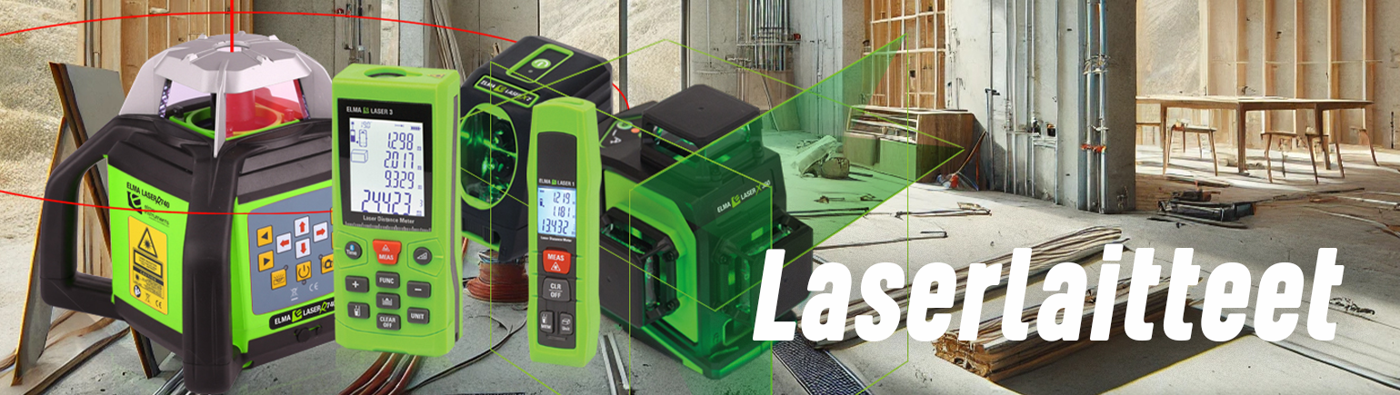 Elman laservalikoimasta löydät helppokäyttöiset ja tarkat laserlaitteet eri sovelluksiin. Pyörivä laser projisoi vaakasuuntaiset linjat lasersäteen rotaation avulla (rotaatio 360°), mikä on avuksi esim. tarkkuutta vaativissa töissä rakennusalalla, maarakennuksessa ja remontoinnissa. Elman ristilinjalaserit mahdollistavat taas linjojen projisoinnin koko laitteen ympäri, sekä pysty- että vaakasuuntaan, mikä lisää joustavuutta. Elman tuotevalikoimasta löydät lisäksi laseretäisyysmittalaitteita etäisyyksien mittaamiseen. Laitteille löytyy myös laadukkaat lisävarusteet, kuten vastaanottimet ja jalustat.