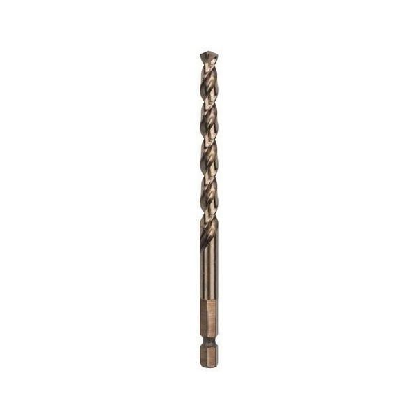 HSS-Co-keskityspora, 1/4":n kuusiovarsi ja poran kärki 135°, Ø <60 mm:n reikäsahoille. Kokonaispituus 120 mm.