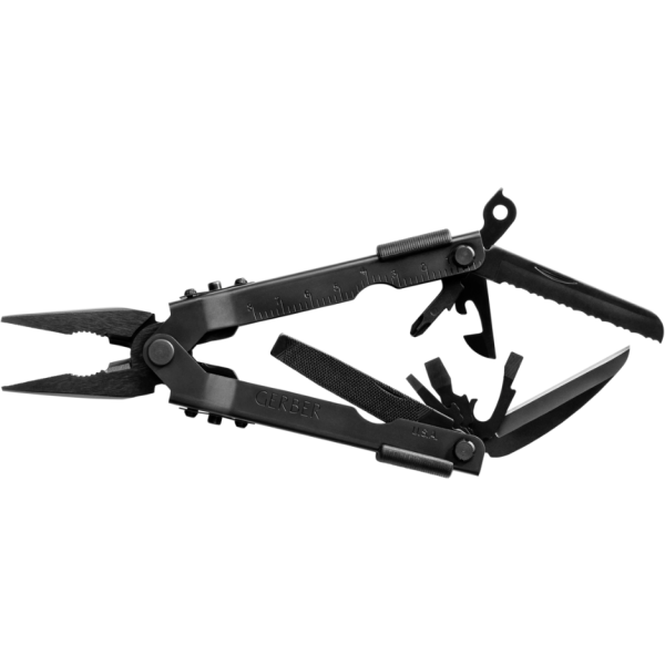 Äärimmäinen monitoimityökalu. Valmistettu ruostumattomasta, mustaksi pinnoitetusta teräksestä, useita toimintoja. Gerberin patentoidulla järjestelmällä työkalu on helppo avata, tarvittaessa myös yhdellä kädellä.