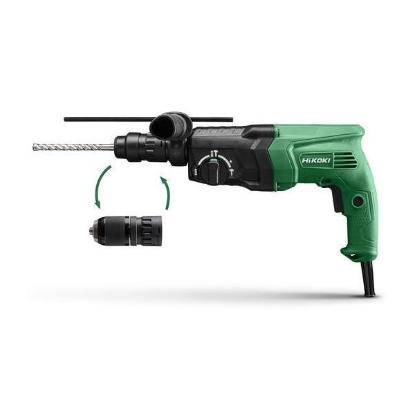 Hikoki DH24PMH on kevyt yhdistelmävasara tehokkaalla moottorilla. 3-toiminen (poraus, poraus iskuilla, talttaus). Vankka muotoilu takaa pitkän käyttöiän. Parempi pikaistukka (one-touch) nopeampaan työkalun vaihtoon ja "Labyrinttituuletus" vähentää pölyn ja roskien pääsyä työkaluun. Käyttöalue: 1) Poraus iskutoiminnolla koviin materiaaleihin kuten betoniin, laattoihin ja erilaisiin kivimateriaaleihin jne. 2) Poraus ilman iskua puuhun, teräkseen, alumiiniin jne. 3) Kevyemmät piikkaustyöt betoniin, laattoihin ja erilaisiin kivimateriaaleihin pyörimisrajoittimella.