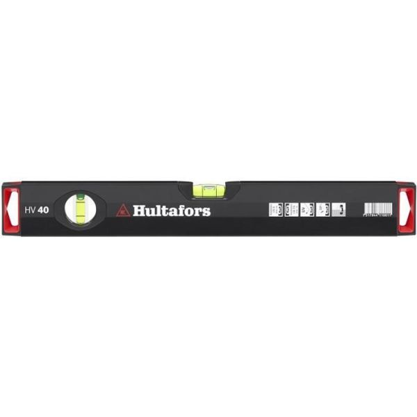 Hultafors HV 40 on vesivaaka 40 cm, 2 kpl harkkolibellejä, joiden säde on 200 mm ja herkkyys 10 mm/m.