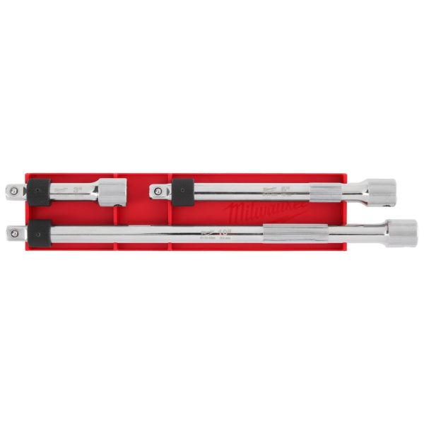 Lukittava jatkovarsisarja. Uritettu lukituskaulus pitää hylsyn tukevasti paikallaan. Varren uritettu alue ja naarasvetopää parantavat hallittavuutta. Kromipinnoite suojaa korroosiolta ja ruosteelta. Laserkaiverretut kokomerkinnät helpottavat ja nopeuttavat koon tunnistamista. Sisältää pituudet: 76 mm, 152 mm, 254 mm.