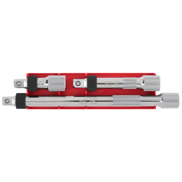 Lukittava jatkovarsisarja. Uritettu lukituskaulus pitää hylsyn tukevasti paikallaan. Varren uritettu alue ja naarasvetopää parantavat hallittavuutta. Kromipinnoite suojaa korroosiolta ja ruosteelta. Laserkaiverretut kokomerkinnät helpottavat ja nopeuttavat koon tunnistamista. Sisältää pituudet: 76 mm, 152 mm, 254 mm.