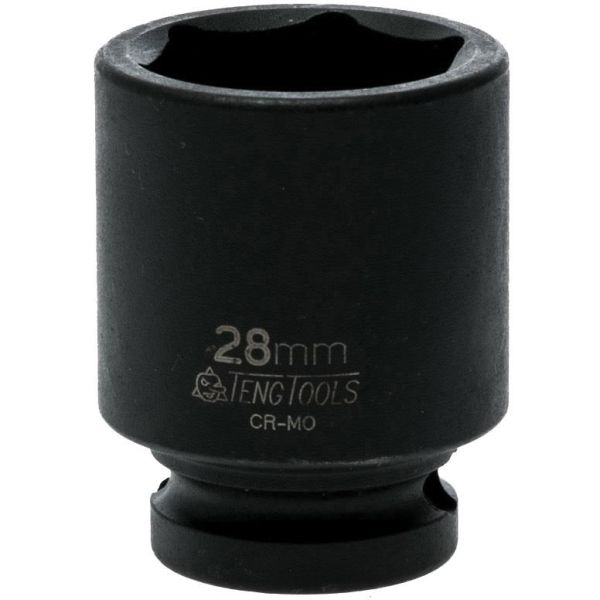 Teng Tools 920528N -hylsy 1/2" nelikulmaisella kiinnityksellä, valmistettu kromimolybdeenierikoisteräksestä. Kuusikulmainen hylsy, reikä lukitustapille, joka lukitsee hylsyn koneen nelikulmaiseen tappiin.