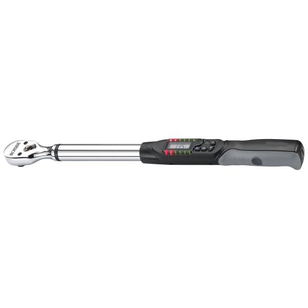 Digitaalinen 36-hampainen momenttiavain. Helppo säätää ja selkeä ilmaisu LED-diodeilla. Tarkkuus: ± 2% (myötäpäivään), ± 3% (vastapäivään), standardin ISO6879:2017 mukaan. Mittayksikkö: Nm / ft.lb / in.lb / kg.cm. Käyttölämpötila -10 °C - +60 °C. Toimii kahdella AA-paristolla (sisältyy toimitukseen). Toimitetaan iskunkestävässä muovilaatikossa kalibrointitodistuksen kanssa.