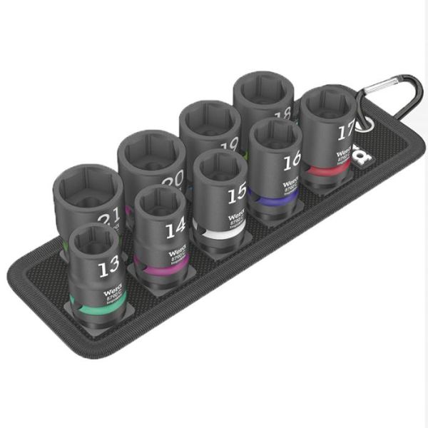 Wera Belt C Impactor on 9-osainen konehylsysarja käytettäväksi 1/2-tuumaisten sähkö- ja paineilmakäyttöisten iskevien ruuvinväänninten kanssa. Tyypilliseen Wera-tyyliin muotoiltu vankka tekstiilivyö sekä 9 Impaktor-konehylsyä tiiviisti pakattuna. Helposti kääntyvä hylsyjen kiinnitysmekanismi takaa hylsyjen varman pidon ja helpon irrottamisen. 9-osainen, kuusikulmainen profiili iskevälle ruuvinvääntimelle 1/2-tuumaisella kiinnityksellä.