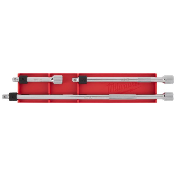 Lukittava jatkovarsisarja. Uritettu lukituskaulus pitää hylsyn tukevasti paikallaan. Varren uritettu alue ja naarasvetopää parantavat hallittavuutta. Kromipinnoite suojaa korroosiolta ja ruosteelta. Laserkaiverretut kokomerkinnät helpottavat ja nopeuttavat koon tunnistamista. Sisältää pituudet: 76 mm, 152 mm, 254 mm.
