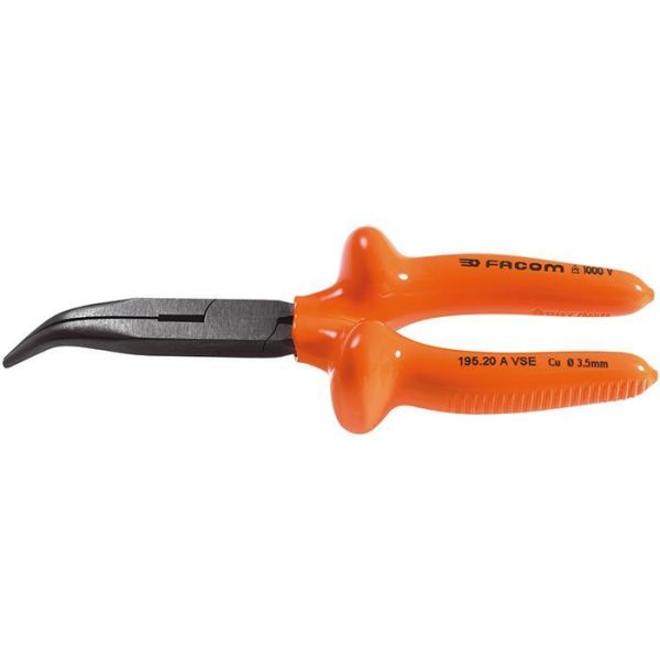 Facom 195.20AVSE, eristetyt kärkipihdit, taivutettu kärki 40 °, jännitteenkesto 1000 V, kapasiteetti Ø 3,5 mm.