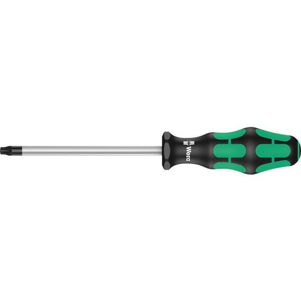 Wera 367 on ruuvitaltta Torx-koloruuveille. Monikomponenttikahva nopeaan ja ergonomiseen ruuvaamiseen, kuusikulmainen rullauspysäytin, Black Point -kärki takaa tarkan istuvuuden ja optimaalisen korroosiosuojan. Värikoodaus profiilin ja koon mukaan, jotta oikeat työkalut löytyvät helposti ja nopeasti.