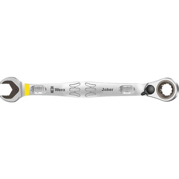Wera Joker Switch on räikkälenkkiavain, jonka kiintoavainpään metallilevy mahdollistaa käytännöllisen pitotoiminnon. Integroitu päätyvastus estää pään poisluiskahtamisen ja mahdollistaa suurten momenttien siirron. Räikkälenkkiavaimen vaihdettavassa metallilevyssä on erittäin kovat hampaat, jotka kiinnittyvät ruuviin ja mutteriin ja vähentävät luistamisriskiä. Kaksinkertainen kuusikulmainen geometria varmistaa, että työkalu pysyy kiinni ruuvissa tai mutterissa, ja siten vähentää poisluiskahtamisen riskiä.