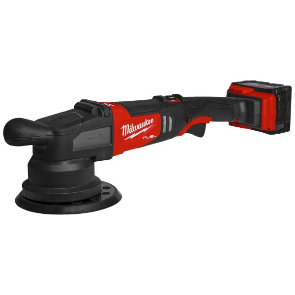 M18 FUEL™ -kiillotuskone epäkeskoliikkeellä, joka tuottaa sähkökäyttöistä kiillotuskonetta vastaavan tehon kiillotus- ja korjaustöihin. 8 eri nopeusvaihtoehtoa parhaan hallinnan ja viimeistelytuloksen saavuttamiseen. 21 mm epäkeskoliike tuottaa nopeat ja tehokkaat kiillotukset ilman hologrammien tai pyörteiden muodostumista. Suuri, ergonominen päällystetty tartunta-alue työkalun etuosassa parantaa käyttömukavuutta ja otetta. Lukitustoiminto tarjoaa käyttömukavuutta pitkäkestoisiin kiillotuksiin. Line-lock-out-toiminto estää automaattisen käynnistymisen. Paino akun kanssa 3,2 kg.
