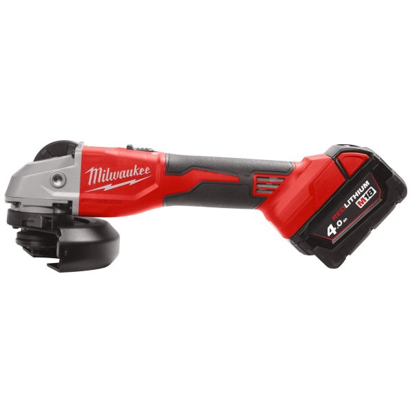 Milwaukeen akkukulmahiomakone M18™ 125 mm liukukytkimellä, jonka hiiliharjaton POWERSTATE™-moottori tuottaa 11 000 kierr./min tehoa katkaisu- ja hiontatöihin (800 W kulmahiomakonetta vastaavan tehon). Sisältää 2 x M18™ (18 V) 4,0 Ah -akkua ja laturin. Suojakytkin suojaa käyttäjää takapotkulta ja lukittava turvakytkin jälleenkäynnistymissuojalla auttaa ehkäisemään vahinkokäynnistymisen. Kompaktein ja kevyin akkukulmahiomakone Milwaukeen valikoimassa. Paino akun kanssa 2,4 kg. Mukana 2 x 4,0 Ah REDLITHIUM™-akkua, M12™ - M18™-laturi ja pinottava HD BOX-laukku.