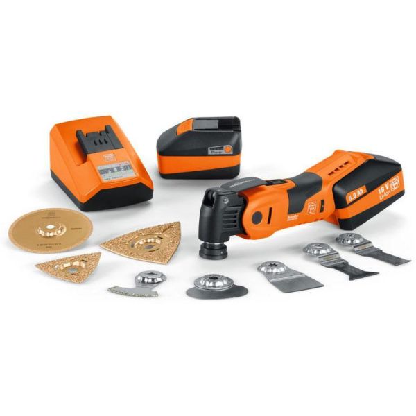 FEIN AFSC 18 QSL SuperCut -akkumonitoimikone 18 V erityisesti laatta-/kylpyhuonesaneerauksessa käytettäväksi. StarlockPlus-kiinnitys rakentamiseen ja remontointiin ja lisätarvikevalikoima laattojen irrotukseen ja laattasaumojen poistamiseen kylpyhuoneremonteissa.