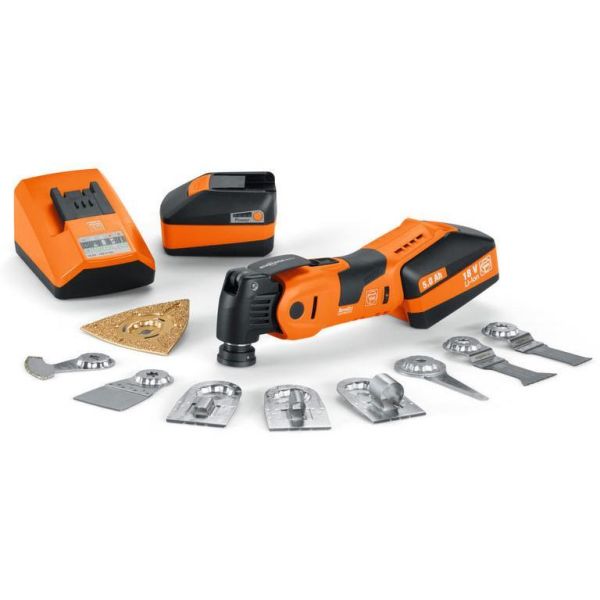 FEIN AFSC 18 QSL SuperCut LVI on 18 V:n StarlockPlus-pikakiinnityksellä varustettu akkumonitoimikone, joka sisältää erityisen lisätarvikevalikoiman saniteettikorjausten tärkeimpiin käyttötarkoituksiin.