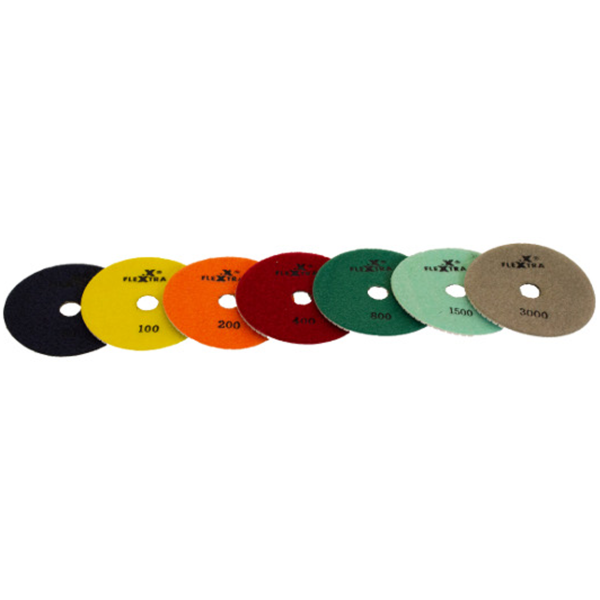 Sarja sisältää 7 hiomalaikkaa; karkeudet K50, K100, K200, K400, K800, K1500 ja K3000. Ø 125 mm märkä/kuiva. Tarranauhakiinnittimellä. Segmentin korkeus: 4 mm.