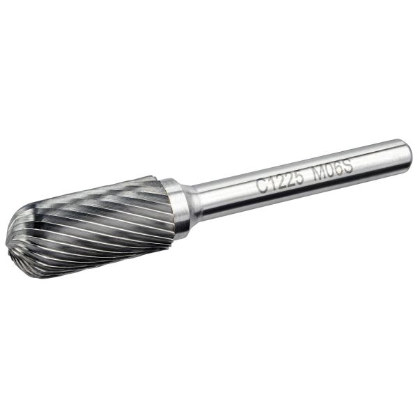 Sylinterin mallinen jossa pyöristetty pää. Pintojen tasaukseen, muotoiltu liitin ja voiteluainejäämien poisto. Keskihammastus, lastunkatkaisin. Kovametallia.