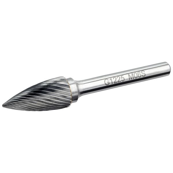 Teroitettu muoto. Hyvä pääsy uriin ja sisänurkkiin. Keskihammastus ja lastunkatkaisin. Kovametalli.