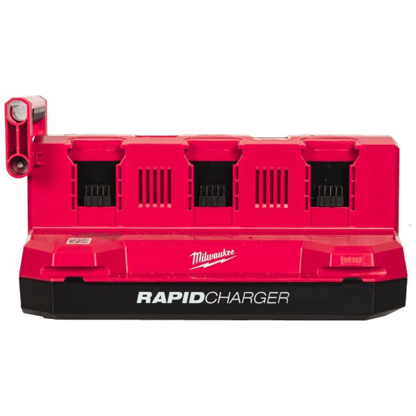 Milwaukee M18 MPC6 M18™ PACKOUT™ 6-paikkainen pikalaturi, joka lataa kaikki M18™-akut. 6 paikkaa M18™-akuille ja lataa kahta akkua samanaikaisesti.