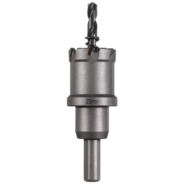 TCT-metallireikäsaha Milwaukeelta. Karbidihammasteknologia tarjoaa parhaan suorituskyvyn, nopeuden ja pitkän käyttöiän. 25 mm poraussyvyys levymetallin ja putkien poraamiseen. Yksiosainen muotoilu, joka vähentää tärinää ja mahdollistaa tarkan porauksen. Turvakaulus estää yliporaamisen. Työntöjousi työntää tulpan ulos, mikä säästää aikaa. 3-reunainen varren muotoilu estää terää liukumasta istukassa ja takaa parhaan tehon siirtymisen. Halkaisijat 16–76 mm 10 mm:n 3-reunaisella varrella ja yli 80 mm:n halkaisijat 13 mm:n 3-reunaisella varrella. Vaihdettava keskiöporanterä ja jousi. Käytä viilentävää voiteluainetta pidentääksesi terän käyttöikää. Käytä metalleihin leikkausöljyä, alumiinille tärpättiä ja muoville vettä. Kuivaporaus valurautaan. Sopii teräksen poraamiseen (<1200 N/mm²) 4 mm asti, ruostumattoman teräksen poraamiseen 2 mm asti sekä alumiinille, valuraudalle, kuparille, lasikuidulle ja PVC:lle.