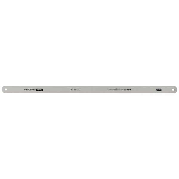 Fiskars Pro-rautasahanterä sahaa nopeasti ja siististi metallia, muovia, PVC:tä, kaapelikanavia, kupariputkia, pultteja ja nauloja. Kestävä kaksoismetallinen 24 TPI-terä sopii Fiskars Pro TrueTension™-rautasahaan, jossa on näkyvä, integroitu teräsäilytys.