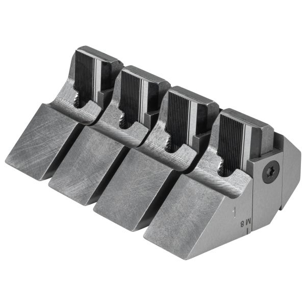 Leikkuuteräjärjestelmä ja pidike metrikokoiselle pulttikierteelle, ISO 261 (DIN 13), M 8. REMSin uudelleen teroitettava tangentiaalinen leikkuuteräjärjestelmä optimaalisella leikkausgeometrialla varmistaa helpon aloitus- ja kierreleikkauksen ja puhtaat kierteet. Leikkuuteräjärjestelmä kiinnitetään erityiseen pidikejärjestelmään. Leikkuuterät ja pidikkeet muodostavat leikkuusarjan. WS-leikkuuterät on valmistettu nuorrutuskarkaistusta, erikoiskarkaistusta erikoisteräksestä, materiaalille < 500 N/mm² (MPa).