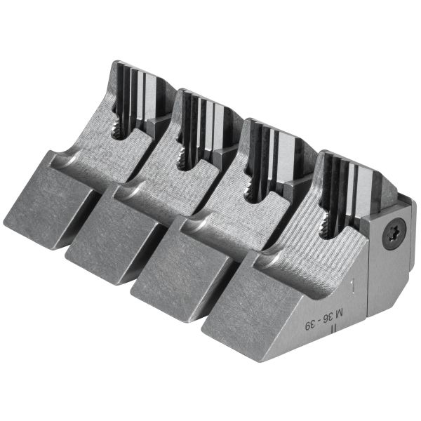 Leikkuuteräjärjestelmä ja pidike metrikokoiselle pulttikierteelle, ISO 261 (DIN 13), M 36-39. REMSin uudelleen teroitettava tangentiaalinen leikkuuteräjärjestelmä optimaalisella leikkausgeometrialla varmistaa helpon aloitus- ja kierreleikkauksen ja puhtaat kierteet. Leikkuuteräjärjestelmä kiinnitetään erityiseen pidikejärjestelmään. Leikkuuterät ja pidikkeet muodostavat leikkuusarjan. WS-leikkuuterät on valmistettu nuorrutuskarkaistusta, erikoiskarkaistusta erikoisteräksestä, materiaalille < 500 N/mm² (MPa).