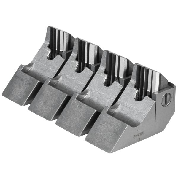 Leikkuuteräjärjestelmä ja pidike, kierre M raudoitusteräkselle, ISO 261 (DIN 13), M 42-45. REMSin uudelleen teroitettava tangentiaalinen leikkuuteräjärjestelmä optimaalisella leikkausgeometrialla varmistaa helpon aloitus- ja kierreleikkauksen ja puhtaat kierteet. Leikkuuteräjärjestelmä kiinnitetään erityiseen pidikejärjestelmään. Leikkuuterät ja pidikkeet muodostavat leikkuusarjan. HSS-leikkuuterät soveltuvat vaikeasti työstettäville materiaaleille > 500 N/mm² (MPa).