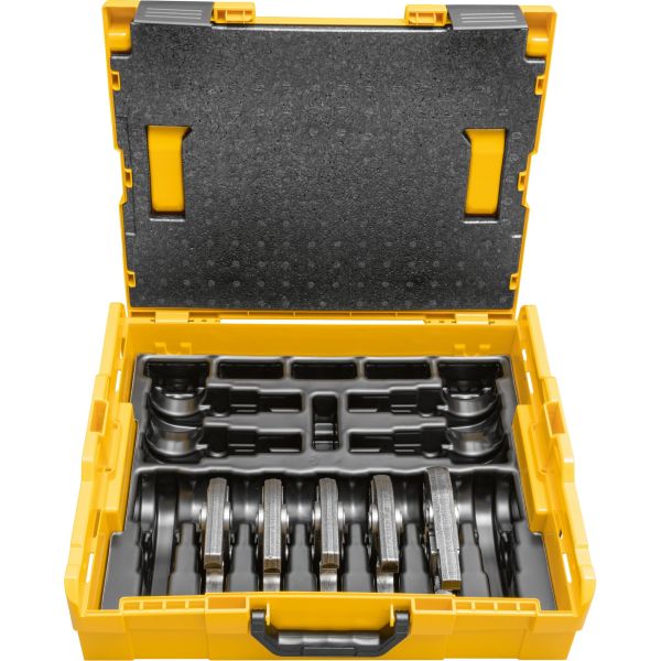 REMS 578055 R on puristusleukasarja, joka sisältää puristusleuat M15-18-22-28-35. Toimitetaan täydellisenä L-boxx-järjestelmäkotelossa.