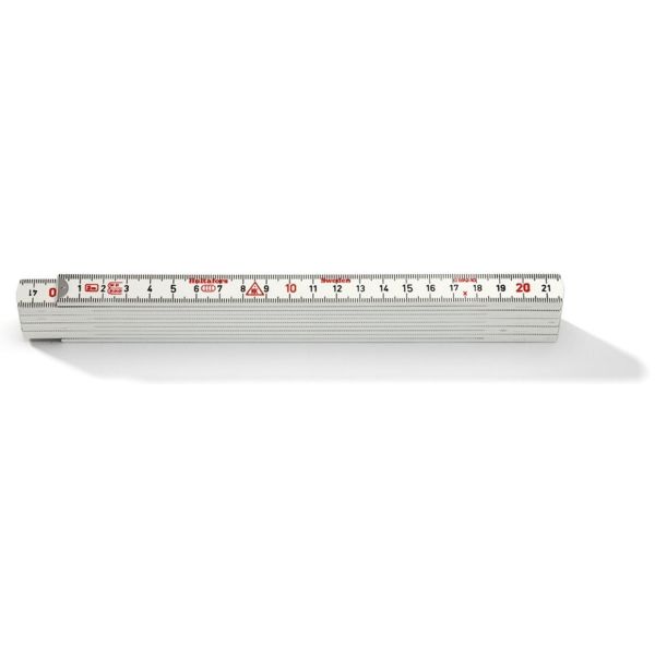 Lasikuituvahvisteisesta polyamidista valmistettu nivelmitta, joka kestää hyvin kosteutta. Ruostumattomasta teräksestä valmistetut päätyhelat ensimmäisessä ja viimeisessä sauvassa suojaavat paremmin kulumiselta. Musta metrinen asteikko molemmilla puolilla, punaiset desimaalinumerot.