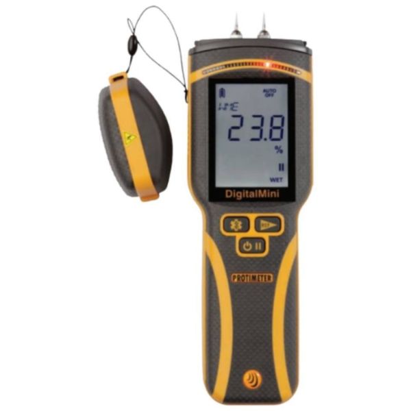 Kestävä, tarkka ja helppokäyttöinen kosteusmittari, joka on varustettu mittauskärjillä, värillisillä LED-ilmaisinvaloilla ja reilun kokoisella digitaalisella näytöllä. Protimeter Digital Mini BLD5775 -kosteusmittari auttaa eri alojen ammattilaisia ja muita käyttäjiä esim. arvioimaan rakennuksen kosteusolosuhteita uudisrakentamisen ja saneerauksen yhteydessä. Kosteusmittari auttaa tunnistamaan kosteusvaurion laajuuden, diagnosoimaan ongelman syyt ja seuraamaan kosteustason muutoksia. Lisäksi kosteusmittari on yhteensopiva valinnaisten lisäosien kanssa, ja referenssitilan ansiosta voit verrata mittaustuloksia referenssimittaustuloksiin.