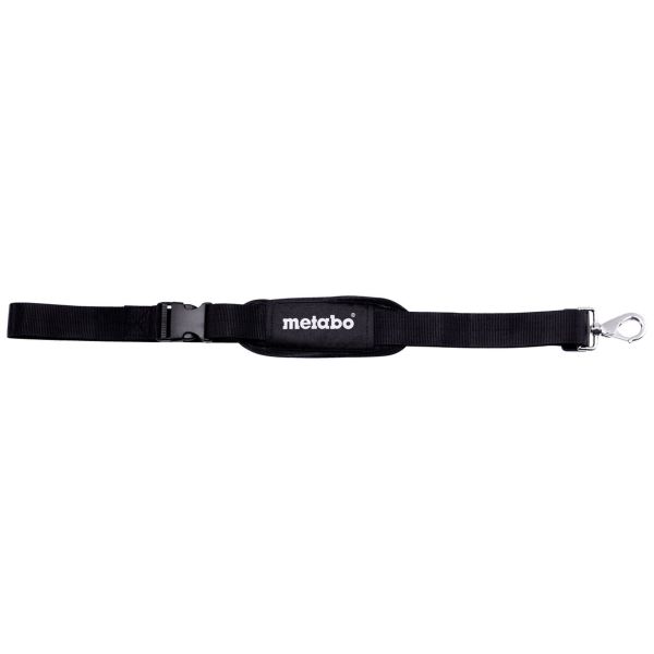 Metabon olkahihna esim. ruohotrimmerin tai lehtipuhaltimen käsittelyyn. Kiinnitys karbiinihakalla sekä varustettu olkapääpehmusteella.