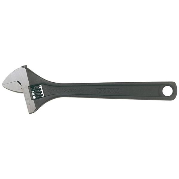 Tuotenumero: TT14499Säädettävä mitta-asteikolla varustettu vaihtoavain, jonka pituus on 150 mm ja joka on valmistettu kromivanadiiniteräksestä. Vaihtoavaimessa on 15° leuan kulma, mikään liikkuvan leuan osa ei työnny ulospäin.
