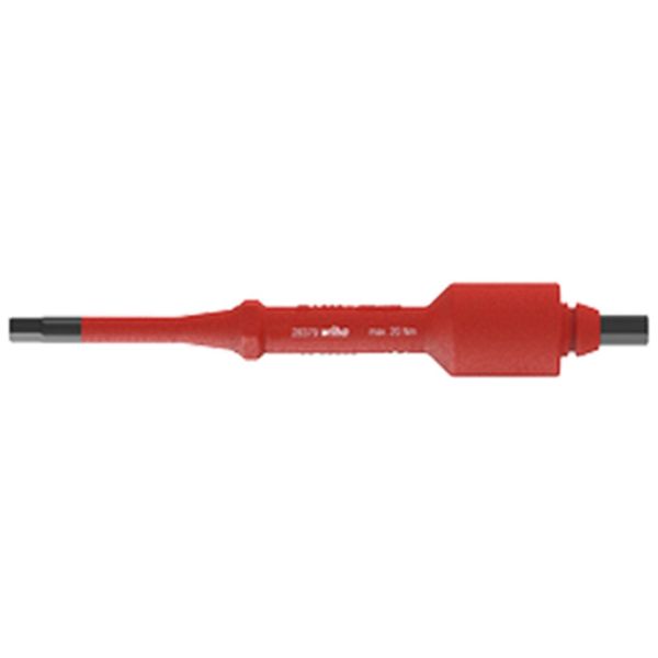 Kuusiokoloterä T-kahvaiselle momenttimeisselille TorqueVario®-S. Jännitteisille osille tehtävien töiden yhteydessä tärkeintä on käyttäjän turvallisuus. Vaihtoterä electric mahdollistaa yhdessä Wihan eristetyn momenttiruuvimeisselin poikkikädensijan TorqueVario®-S electric kanssa ruuvien valvotun kiristämisen ja avaamisen. Eristetylle vaihtoterälle suoritetaan kansainvälisen standardin IEC 60900 mukainen kappaletarkastus, ja se mahdollistaa turvallisen työskentelyn jännitteisten osien parissa 1 000 V AC saakka.