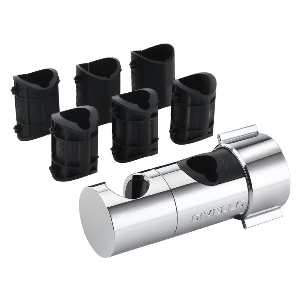Yleismallinen liukusäädin (käsisuihkupidike) suihkutankoon (Ø 18-25 mm). DIVELLO ORIGINAL™: Kaikkien vesikalusteiden kanssa yhteensopiva ja optimoitu alkuperäistuote. Voidaan asentaa suoraan (ilman irrottamista) kaikkiin suihkutankoihin (Ø 18, 19, 20.6, 22, 24 ja 25 mm).