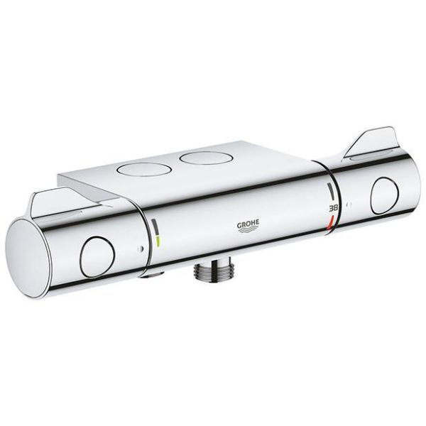 Grohe GRT 800 on suihkusekoitin seinäasennukseen, jossa keraaminen 1/2" sulku ja 1/2" suihkuliitäntä alapuolella. Sekoitin sopii pinta-asennetuille 40 c/c putkivedoille joko ylä- tai alapuolelta. Tässä mallissa on sisäänrakennettu takaiskuventtiili takaisinvirtauksen estämiseksi ja Grohe TurboStat kompakti patruuna vaha lämpöelementillä. Sekoittimessa on kiiltävä Grohe StarLight® -kromiviimeistely.