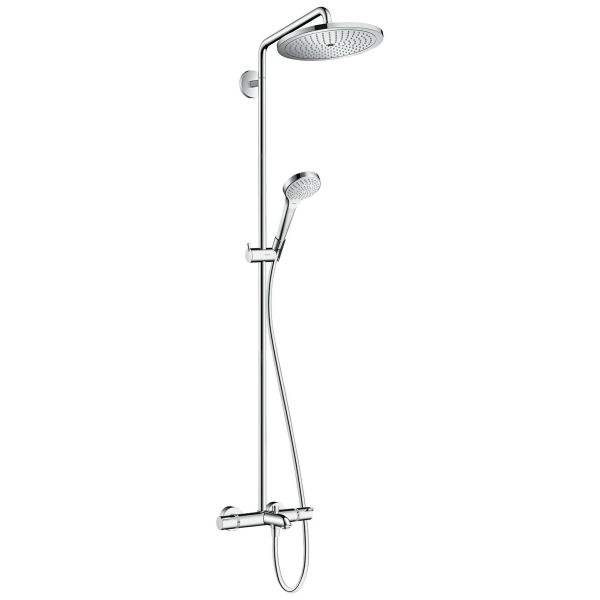 Tuotenumero: 3087445Hansgrohe Croma Select 280 sadesuihkusetti 150 cc, jossa yläsuihku, käsisuihku, amme- ja suihkuhana (kylpyammehana), suihkutanko, suihkuletku ja liukusäädin.