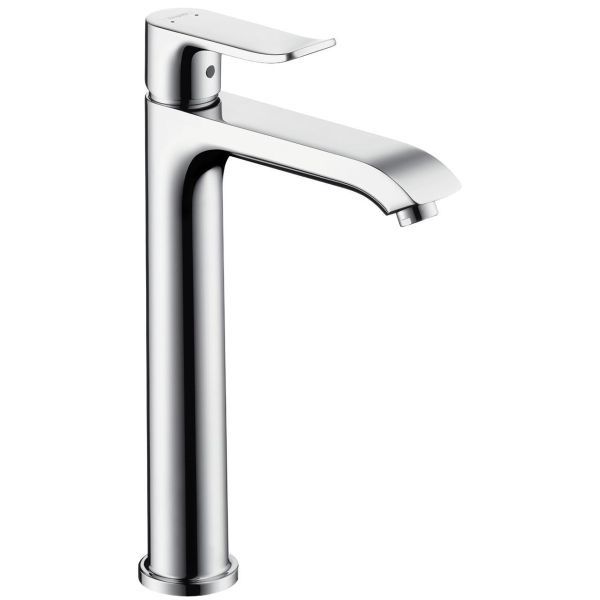 Metris yksiote korkeamallinen pesuallashana vipupohjaventtiilillä. Lämpötilarajoitus säädettävissä ja maksimivirtaama 3 baarin paineella: 5 l/min.