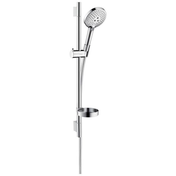 Tuotenumero: 3087160Suihkusetti, joka sisältää käsisuihkun, suihkutangon, suihkuletkun, liukusäätimen ja saippua-astian. Käsisuihkussa on 3 erilaista suihkutyyppiä ja maksimivirtaama 15 l/min.