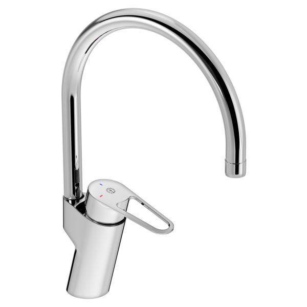 Gustavsberg Uusi Nautic -keittiöhana korkealla juoksuputkella. Energialuokka A, G3/8-liitäntä, ilman astianpesukoneen sulkuventtiiliä, 6 l/m.