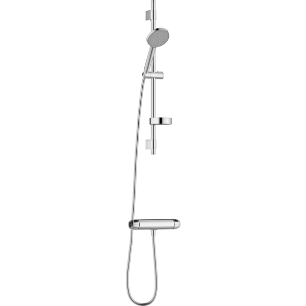 Tämä paketti sisältää kaiken, mitä tarvitset tehdäksesi suihkusta miellyttävän kokemuksen. Paketti sisältää energiatehokkaan suihkuhanan ajattomalla muotoilulla, suihkutangon käsisuihkulla sekä hyllyn saippualle ja shampoolle. Hana varmistaa tasaisen veden virtauksen ja ylläpitää lämpötilaa tasaisena. Turvallinen ja varmakäyttöinen kaikenikäisille. Hanassa on Eco-stop-toiminto, joka vähentää vedenkulutusta automaattisesti, jos halutaan suurempi virtaus, painetaan vain painiketta. Hana on A-energialuokituksen mukainen.