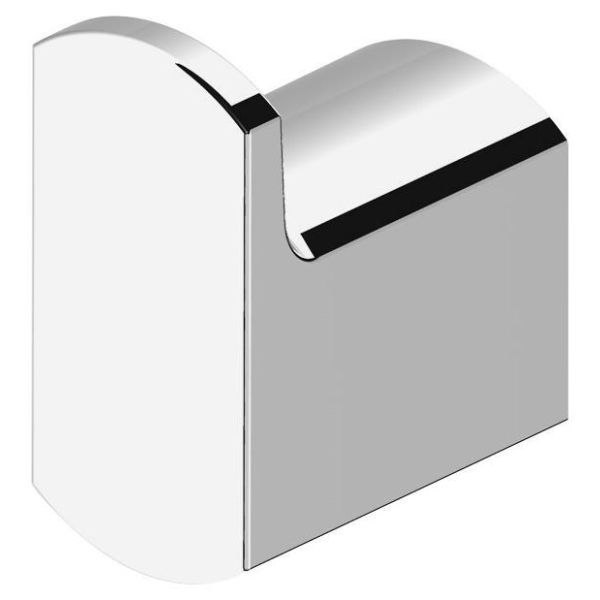Pyyhekoukku. Ylellinen malli, jossa suorat putket ja pyöreät kulmat. Valmistettu metallista, yksi koukku. Kiinnitys ruuveilla tai liimalla.