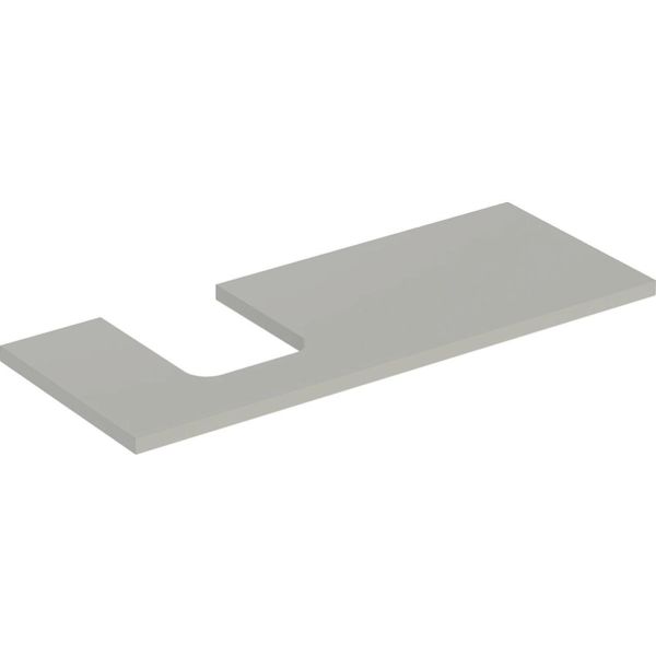 Allastaso leikkuulla (vasen) tason päälle asennettavaa maljamuotoista pesuallasta varten. L: 119 cm, P: 3,2 cm, S: 47,3 cm.