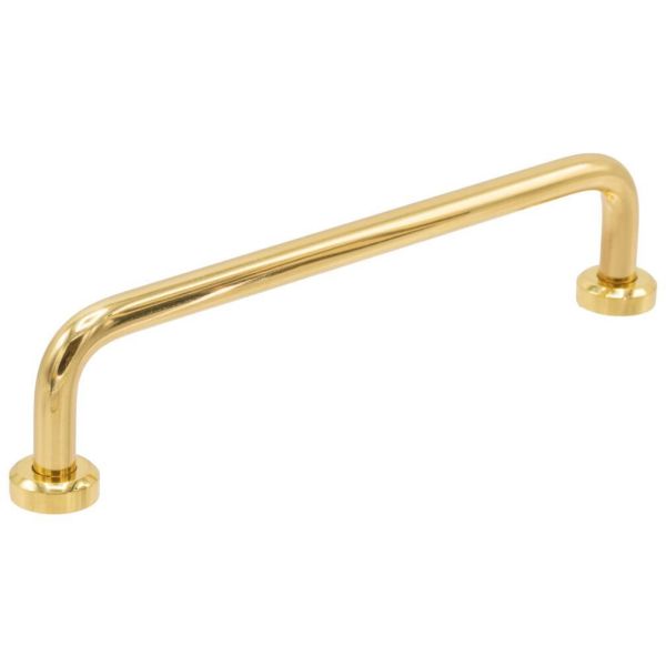 Kiillotettu messinkinen kalustevedin pesuallas-/kylpyhuonekaappeihin. Vetimen kiinnitysväli (c/c) on 128 mm.