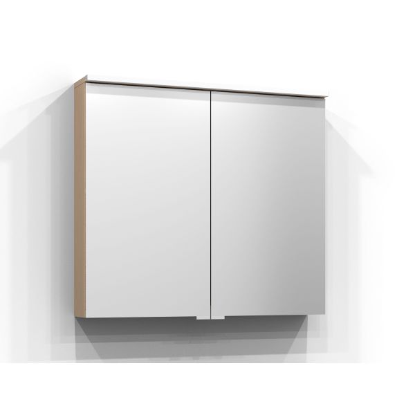 Sarek -peilikaappi pesuallasvalolla, joka on suunniteltu hieman pienempiin kylpyhuoneisiin. Pelkistetyn tyylikäs muotoilu. Saatavilla väreissä valkoinen, hiekka, tammi, ruskea saarni ja musta saarni.