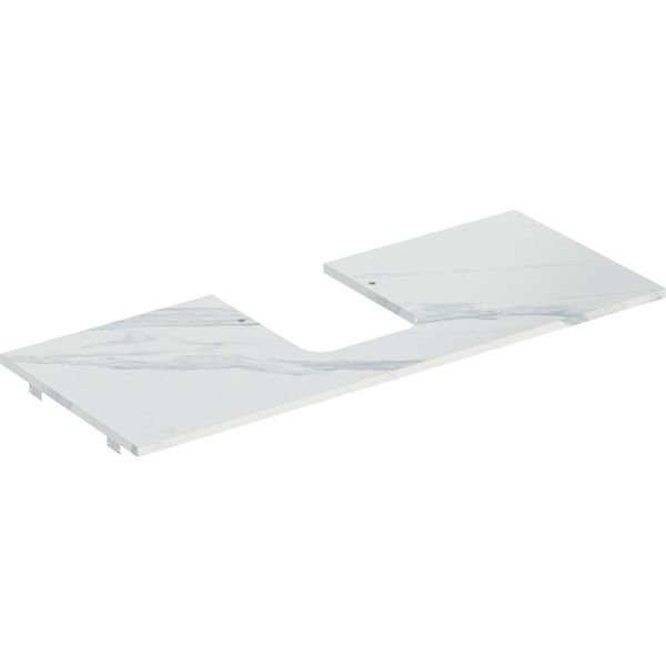 Allastaso leikkuulla (keskellä) tason päälle asennettavaa pesuallasta varten. Asennettavaksi alakaappeihin Geberit ONE, Acanto ja iCon.