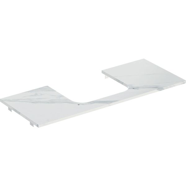 Allastaso leikkuulla (keskellä) tason päälle asennettavaa pesuallasta varten. Asennettavaksi alakaappeihin Geberit ONE, Acanto ja iCon.