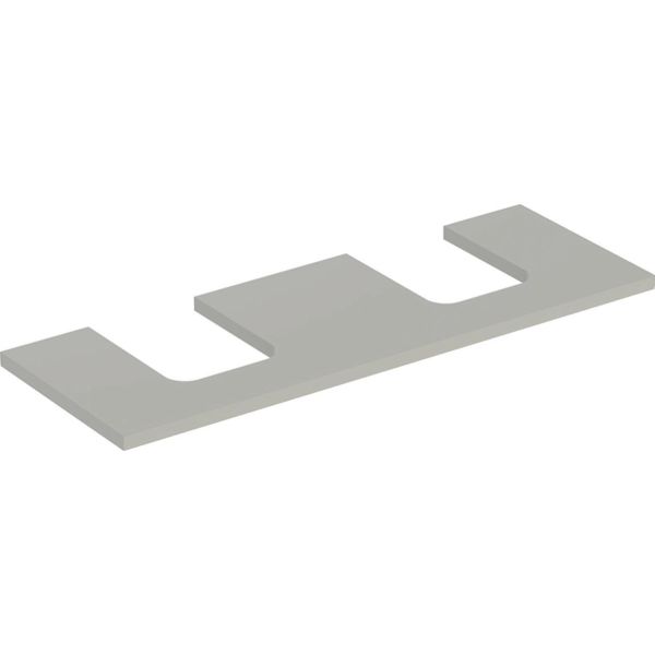 Allastaso leikkuulla (vasen ja oikea) tason päälle asennettavia maljamuotoisia pesualtaita varten. L: 133,8 cm, K: 3,2 cm, S: 47,3 cm.